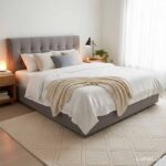 - Upholstered headboard with tufted or plain options for style.