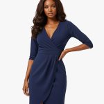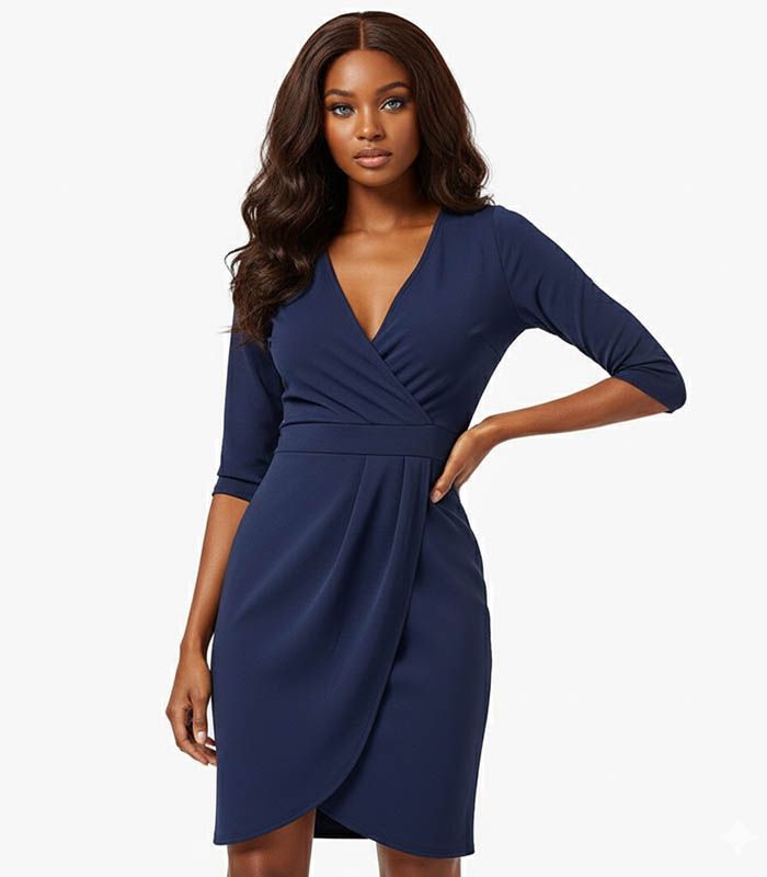 Navy Blue Solid Wrap Dress