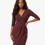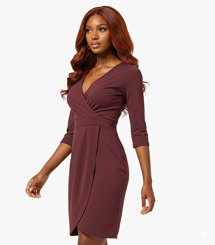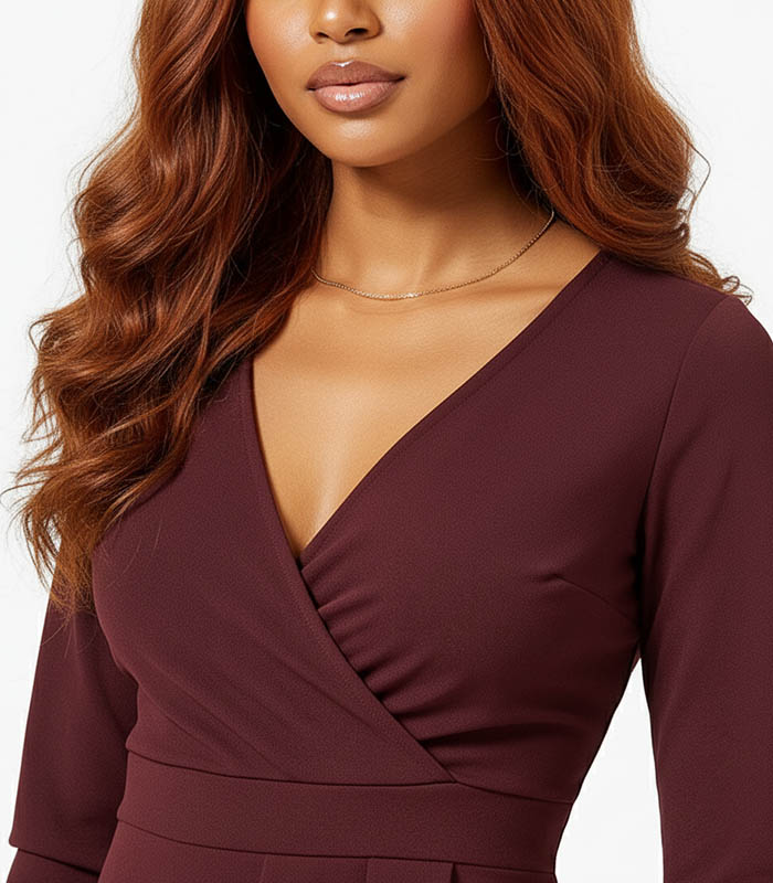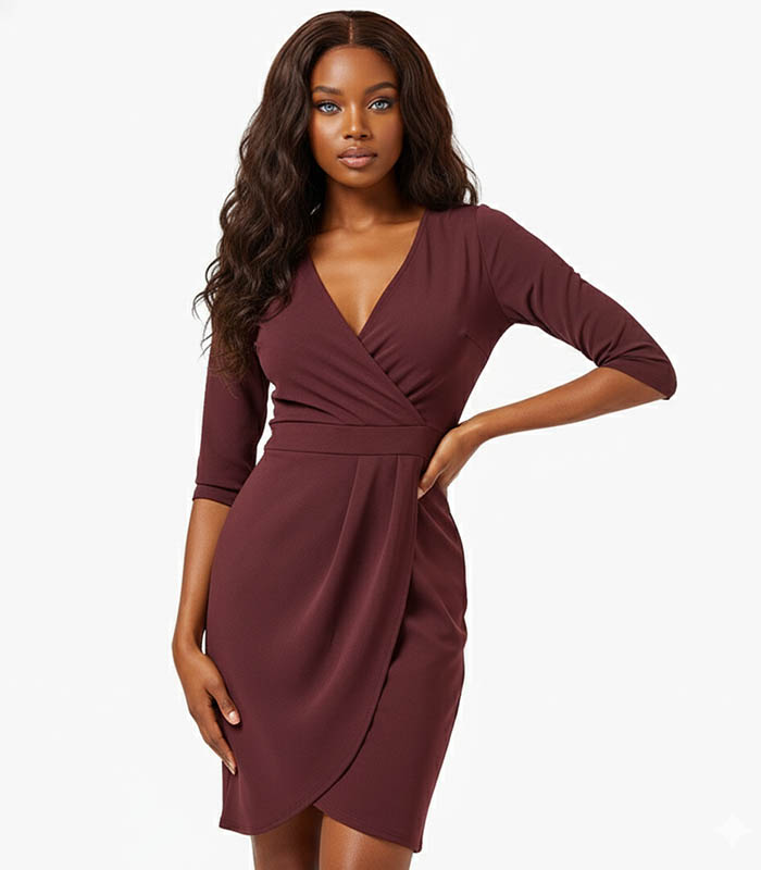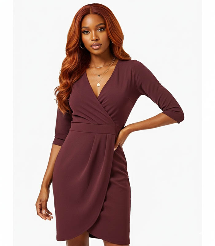Burgundy Solid Wrap Dress