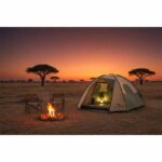 Easy-to-pitch dome tent with waterproof fabric, mesh ventilation, and integrated carrying bag — ideal for safari camping.