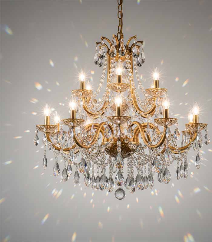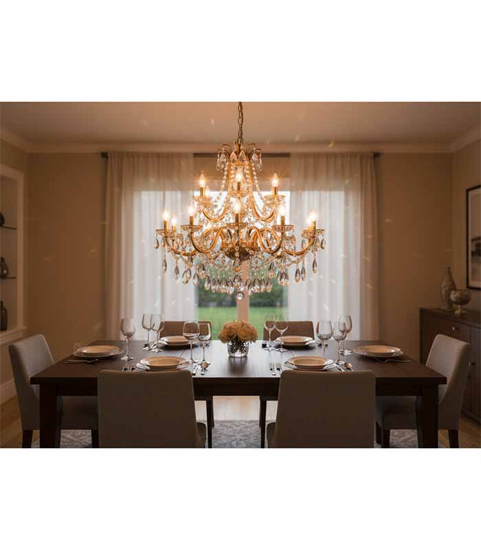 - Multi-tier faceted crystal pendants for premium light dispersion.