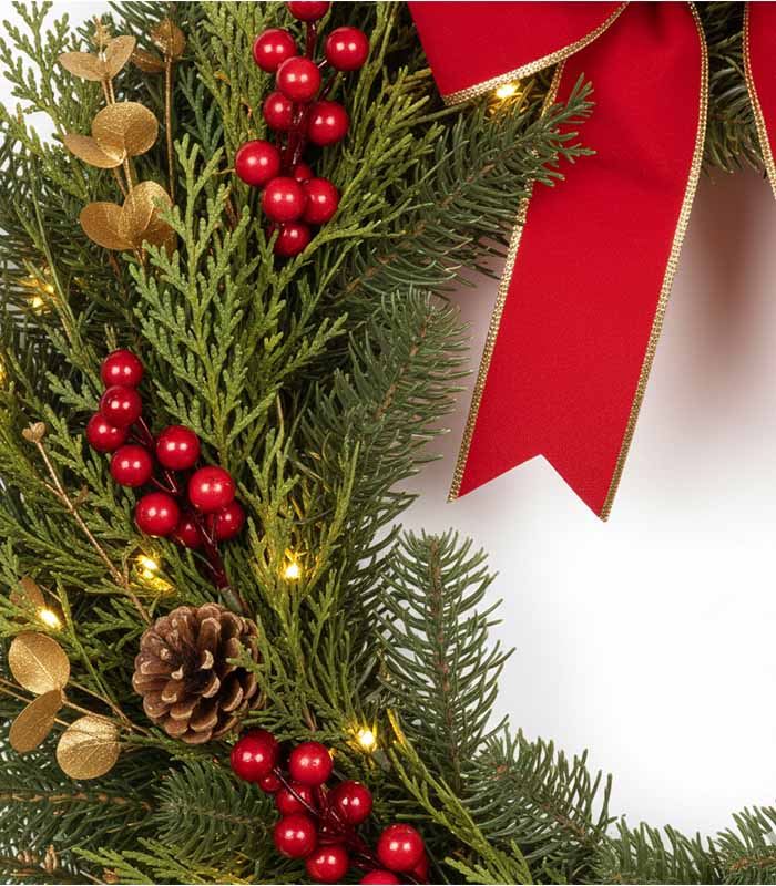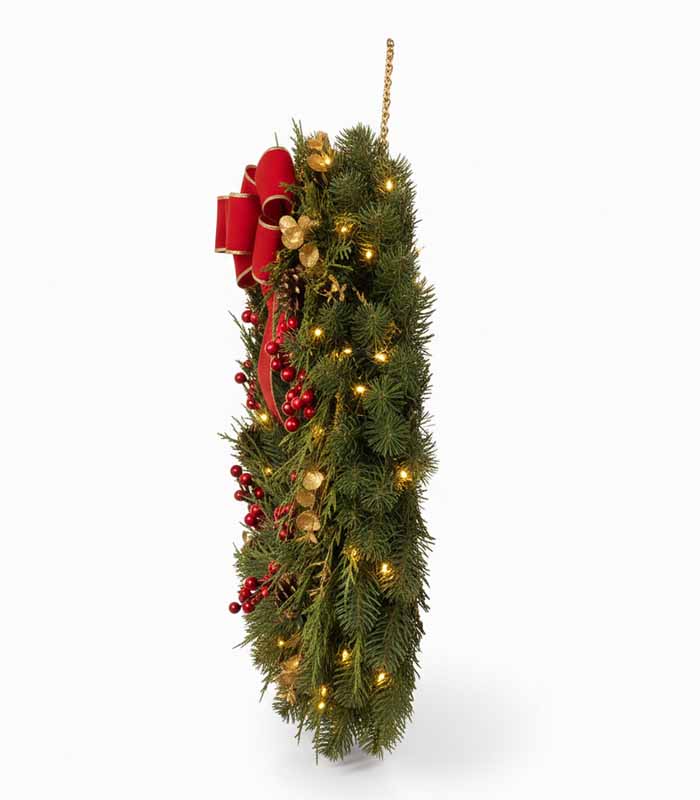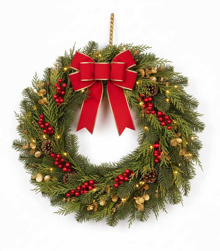 A classic evergreen festive wreath for doors, walls, and event entrances.