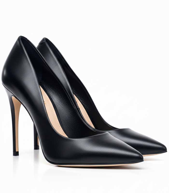 The Classic Black Stiletto Pump is the ultimate wardrobe essential, featuring a timeless pointed toe, sleek leather-look finish, and a sky-high stiletto heel. Perfect for professional power dressing, elegant evening events, or adding an instant lift to any outfit. Experience unparalleled sophistication and versatile style.