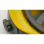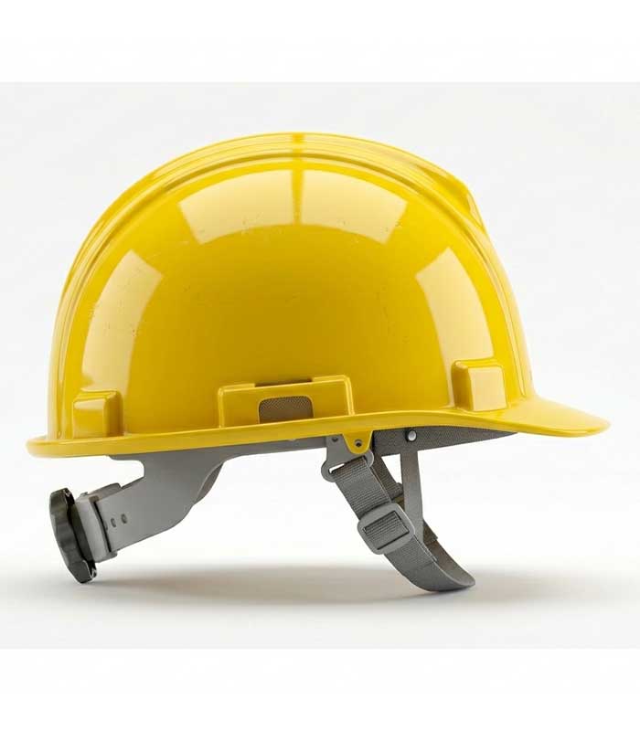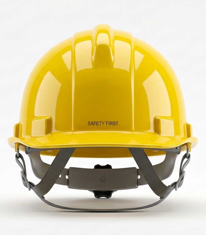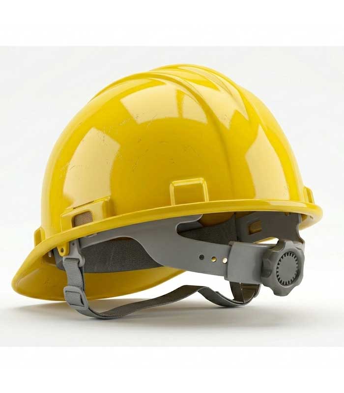 The industrial safety helmet, commonly referred to as a hard hat, is constructed from high-density polyethylene (HDPE) or ABS for superior impact resistance. It features an internal suspension system that distributes impact forces and enhances comfort. Ventilation options may be included for improved airflow. Designed for use in construction, mining, and industrial settings, it meets international safety standards for head protection.