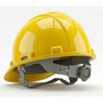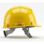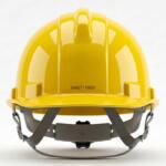 A protective safety helmet designed to safeguard workers from head injuries in construction and industrial environments.
