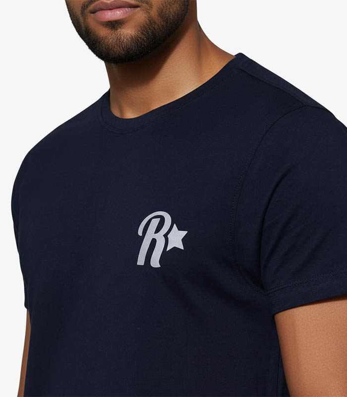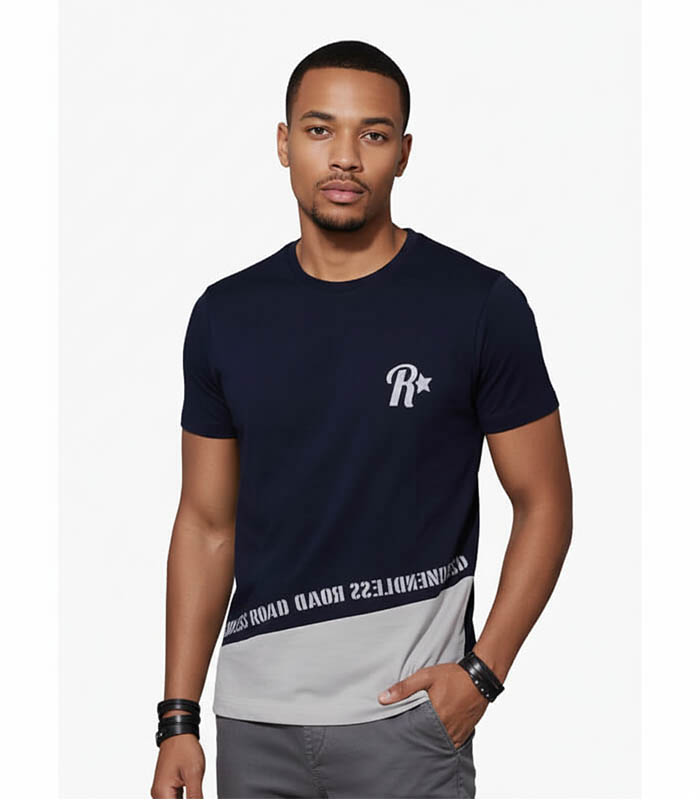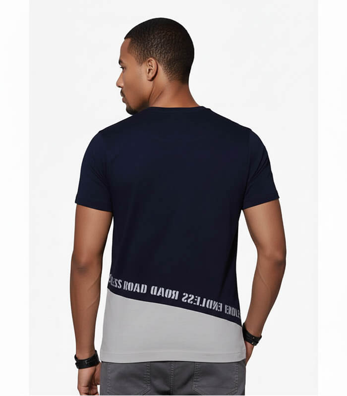 Men Navy Printed Round Neck T-shirt