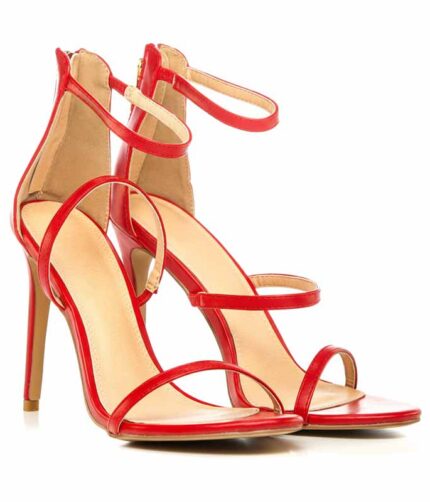 Fiery Red Ankle Strap Stiletto Sandals for Women