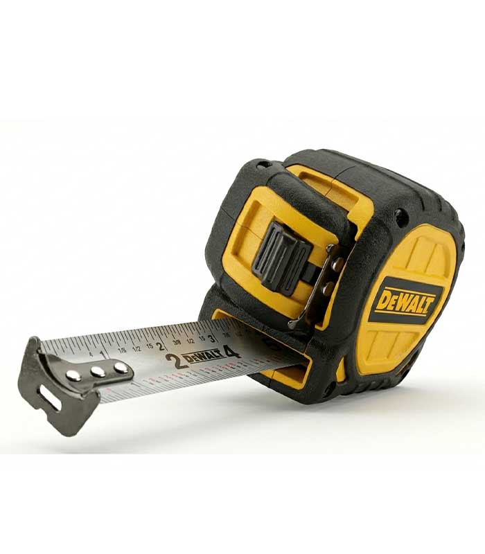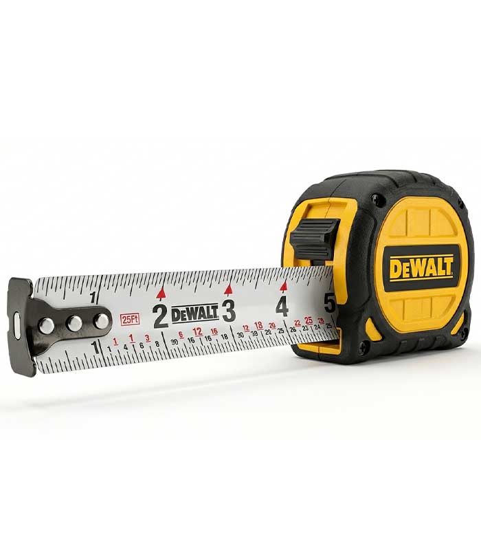 A durable retractable steel tape measure designed for precise linear measurement in construction and carpentry applications.
