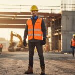 A high-visibility reflective safety jacket designed to enhance worker visibility and safety in construction environments.