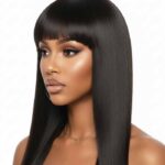 Short Description: Achieve an effortlessly chic and polished look with this luxurious, shoulder-length Sleek Silky Straight Black Wig. Featuring a perfectly cut full fringe bang and a smooth, natural sheen, it offers instant transformation and striking elegance.