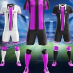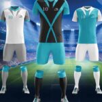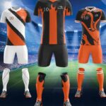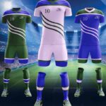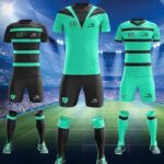 Full customizable team kit including jerseys, shorts, socks and optional warm-up jackets — printable with team logos & numbers.