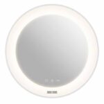 Backlit LED vanity mirror with stepless dimming, anti-fog heating element and touch controls — ideal for makeup and grooming stations.