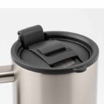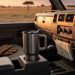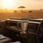 Durable stainless-steel mug with leak-proof lid for hot and cold beverages during safari, hiking, or camping trips.