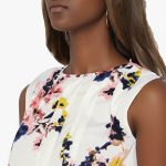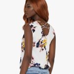 White & Peach-Coloured Printed Blouson Top