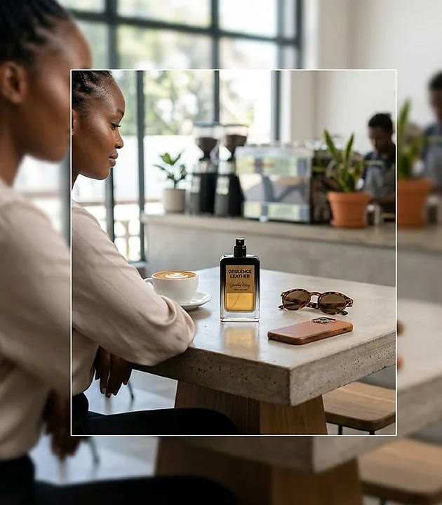 The bottle design reflects the quality within: a clean, rectangular silhouette that fits naturally in the hand, featuring a precision mist spray and a bold gold label. Whether you are starting your morning with a quiet latte or walking the city streets with purpose, Opulence Leather leaves a memorable trail of refinement.