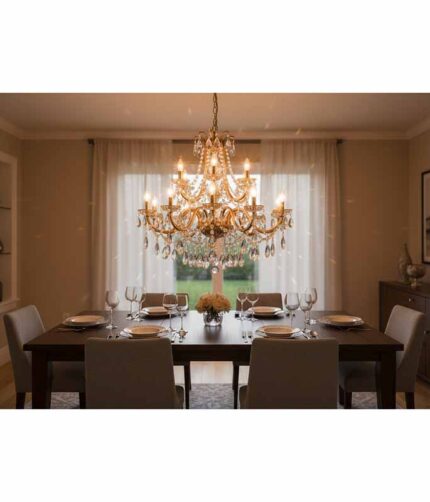 - Multi-tier faceted crystal pendants for premium light dispersion.