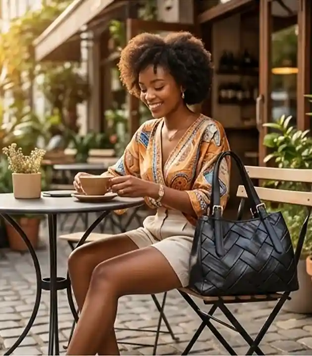 Elevate your daily carry with the Verona Hand-Woven Tote. This piece stands out through its intricate wide-weave construction, offering a tactile experience that sets it apart from standard leather bags. The structured shape provides a polished look, while the soft-touch vegan leather ensures a lightweight feel on the shoulder.